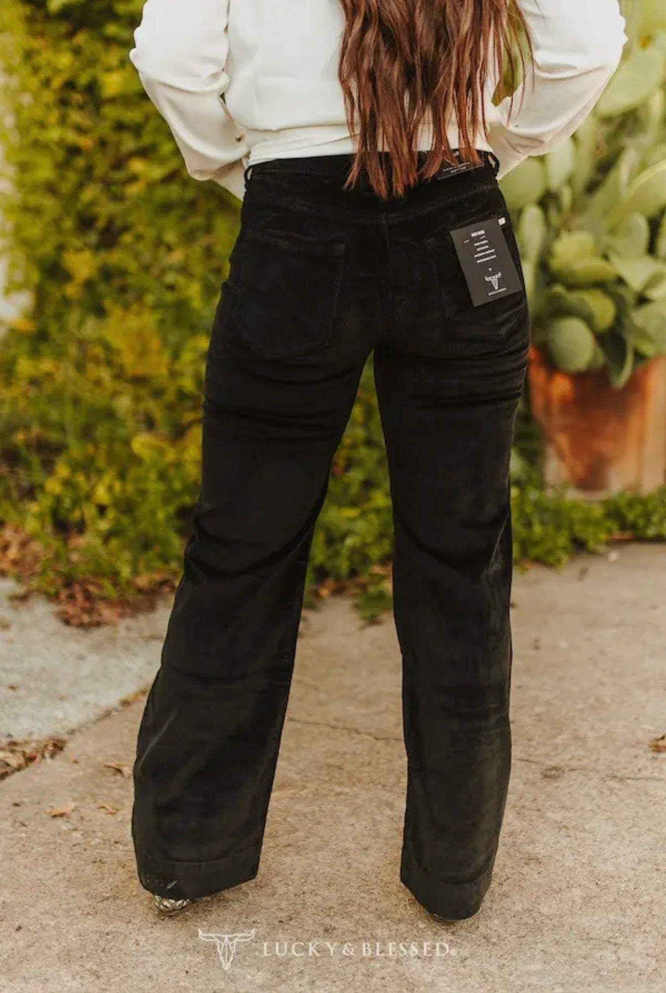 Black corduroy mid rise trouser stretch jeans