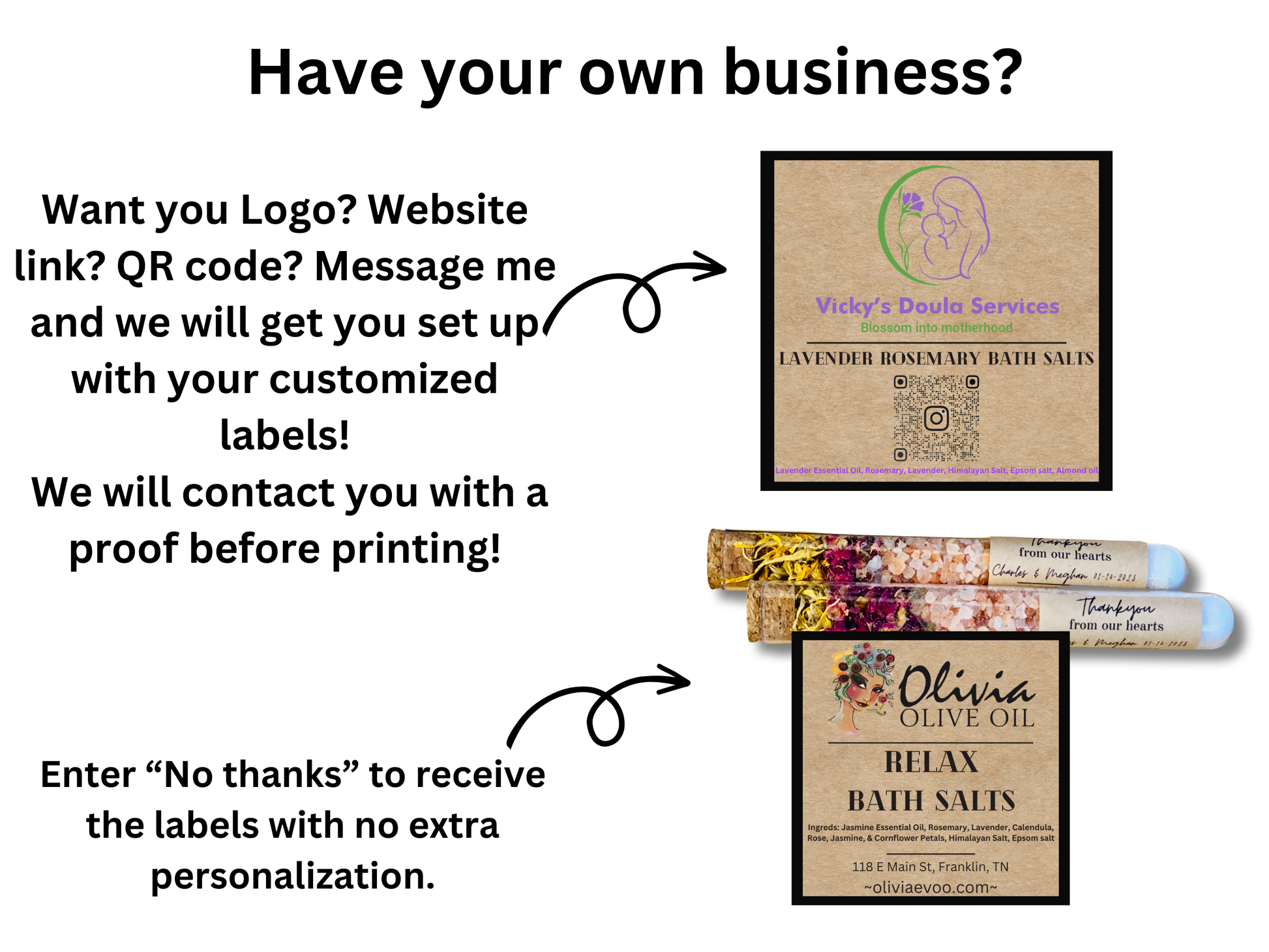 Email your logo to whatcallstheheart@gmail.com before purchase and we will see if we can put it on a label for you!