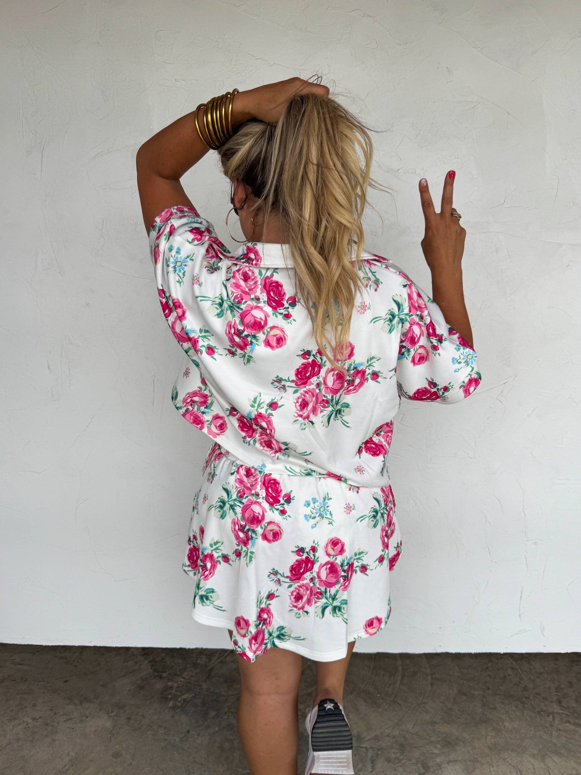 ✔ Top: Relaxed fit with a collared V-neckline and short sleeves