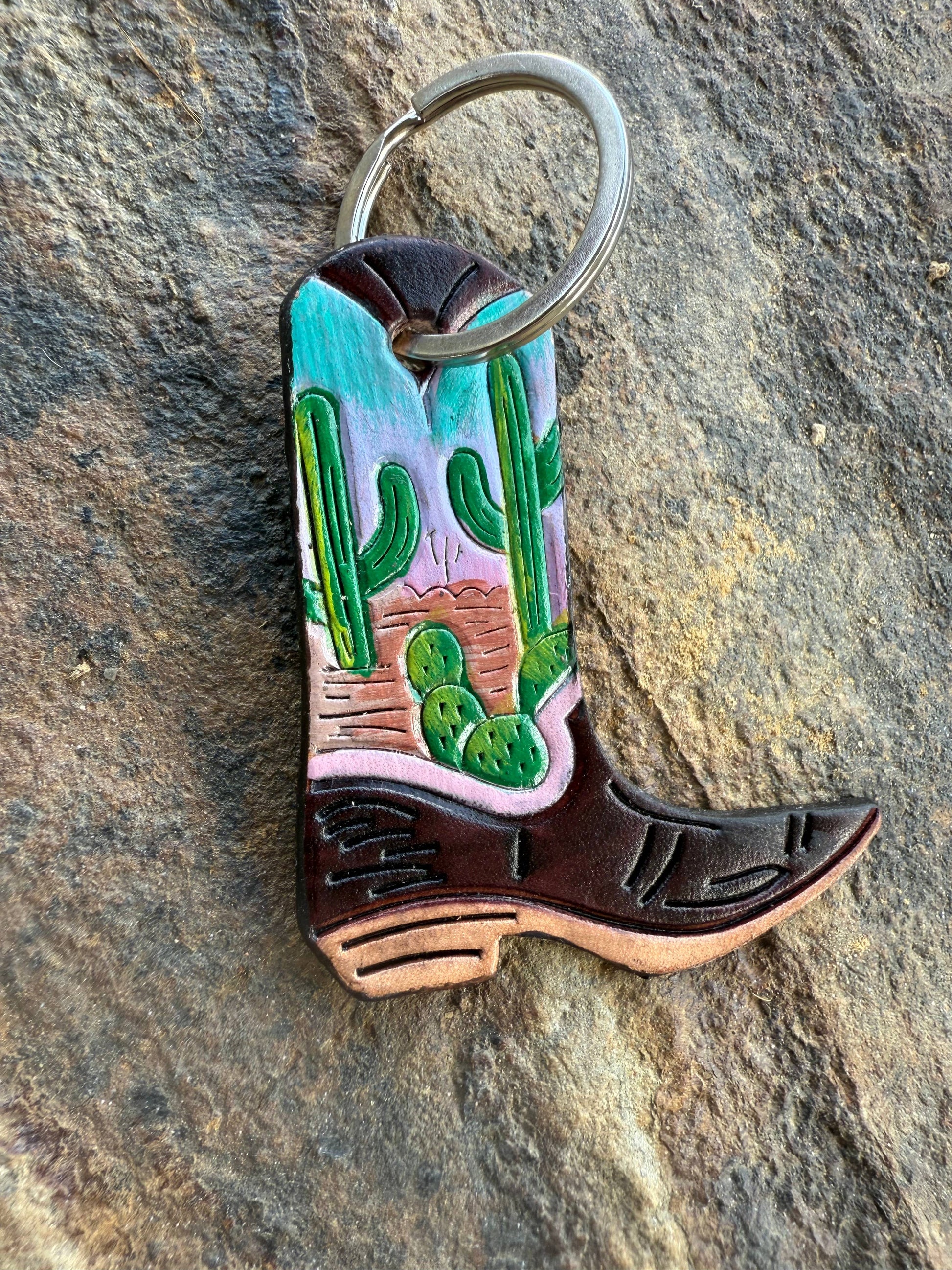 Add a splash of color to your keys with this hand-painted leather boot keychain. Crafted from genuine leather, the 3-inch boot features vibrant, bright colors that stand out while offering lasting durability. A perfect accessory to personalize your keys or bag with a unique, eye-catching touch.