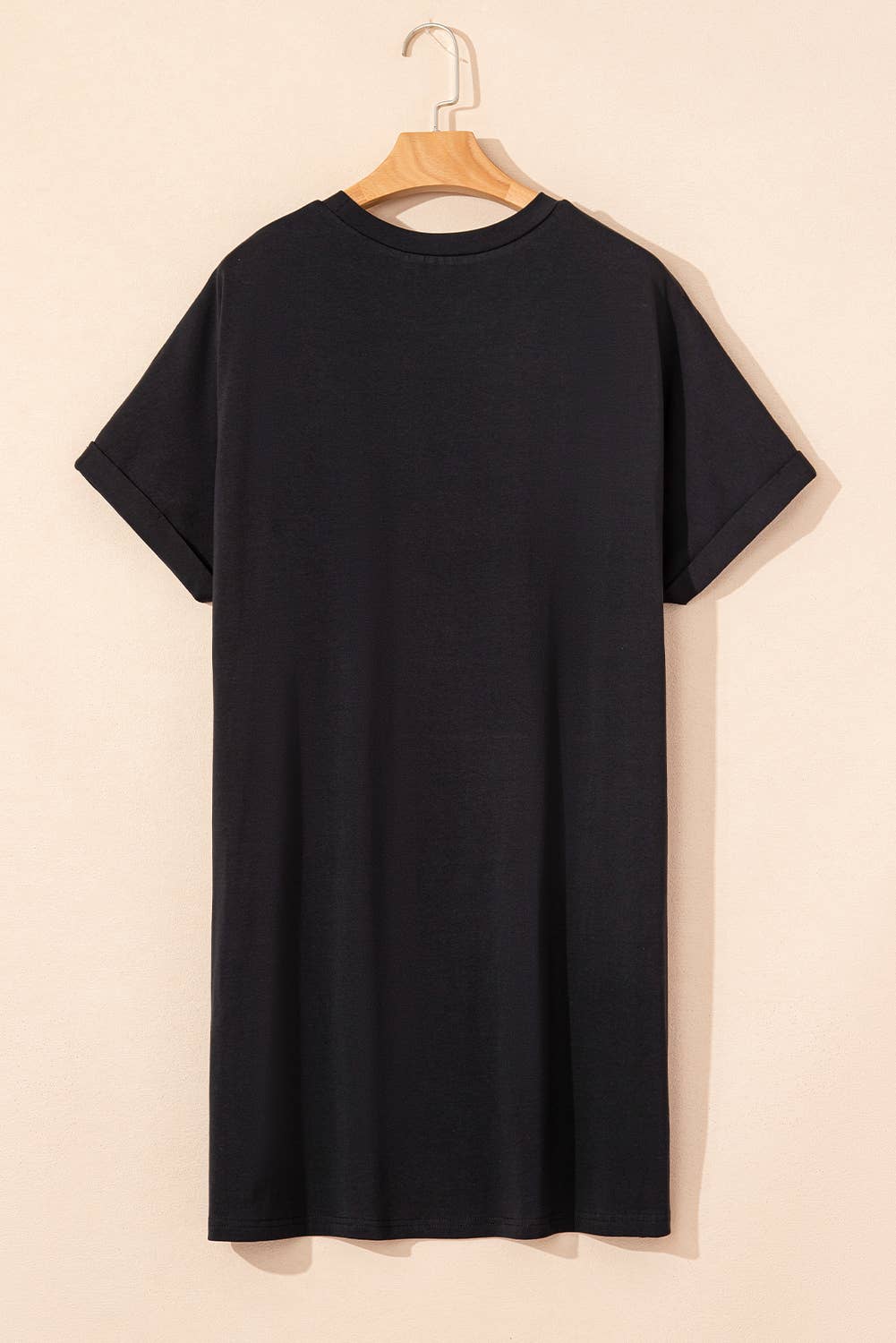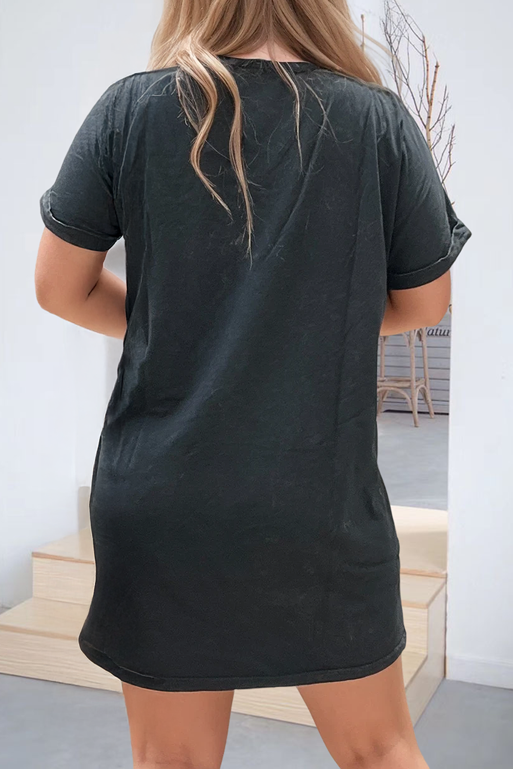 Nashville Guitar Print Crew Neck T Shirt Mini Dress (S-XL)