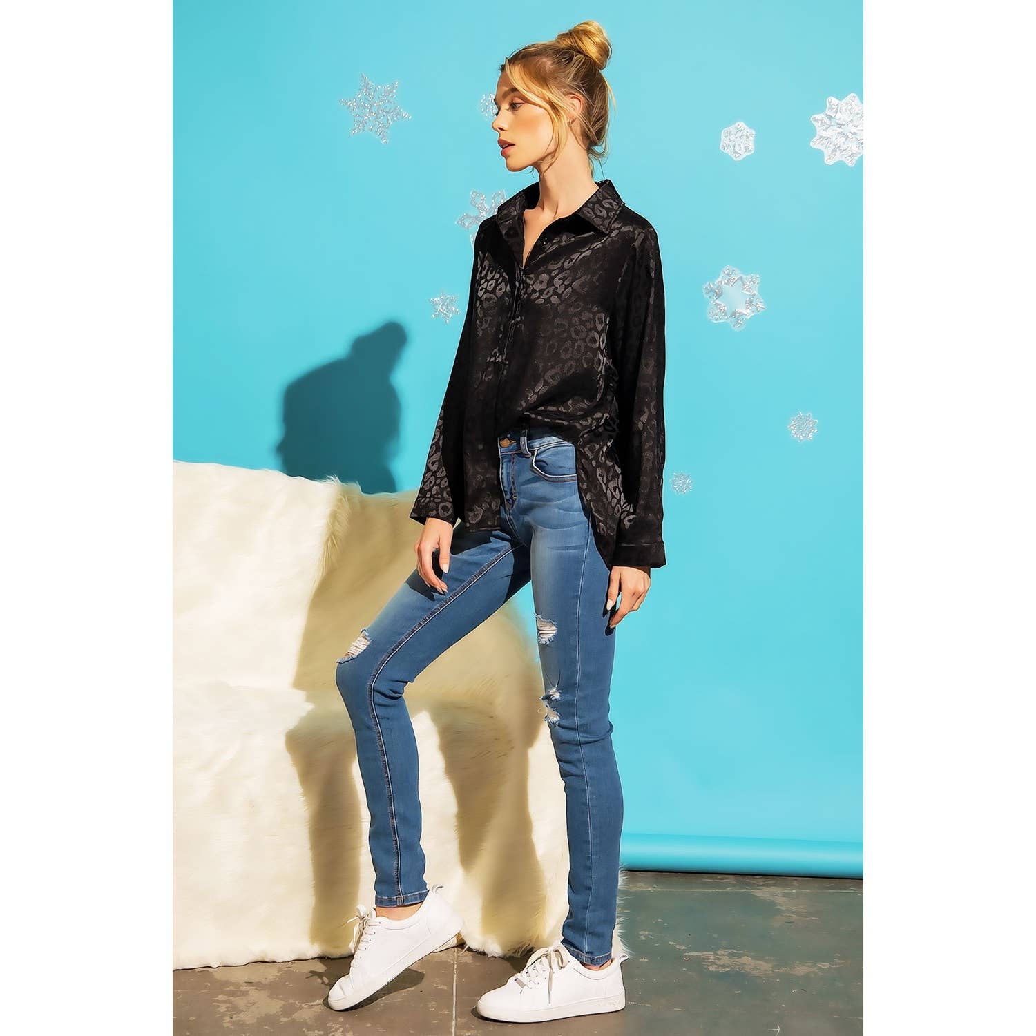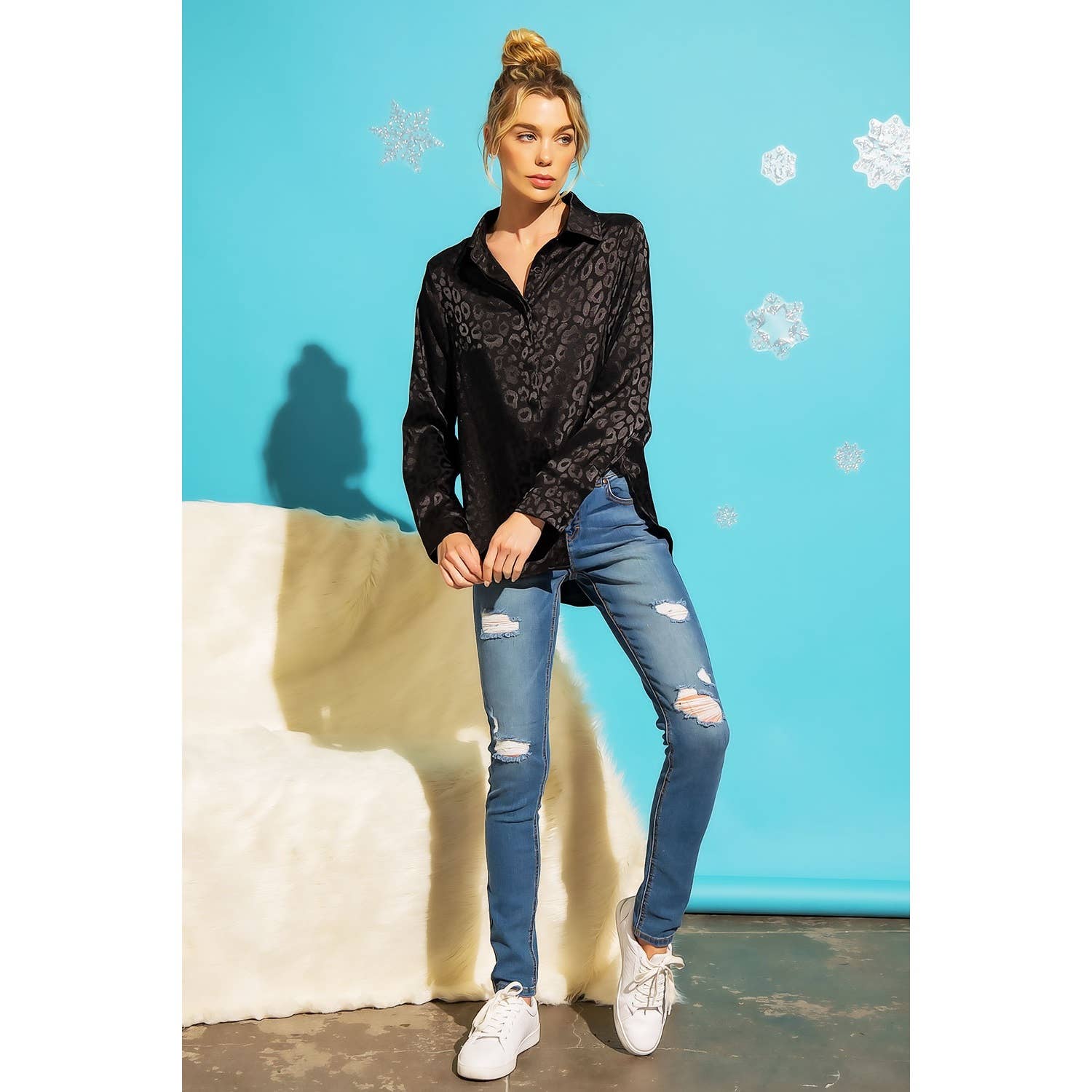 SATIN LEOPARD PRINT BUTTON DOWN TOP